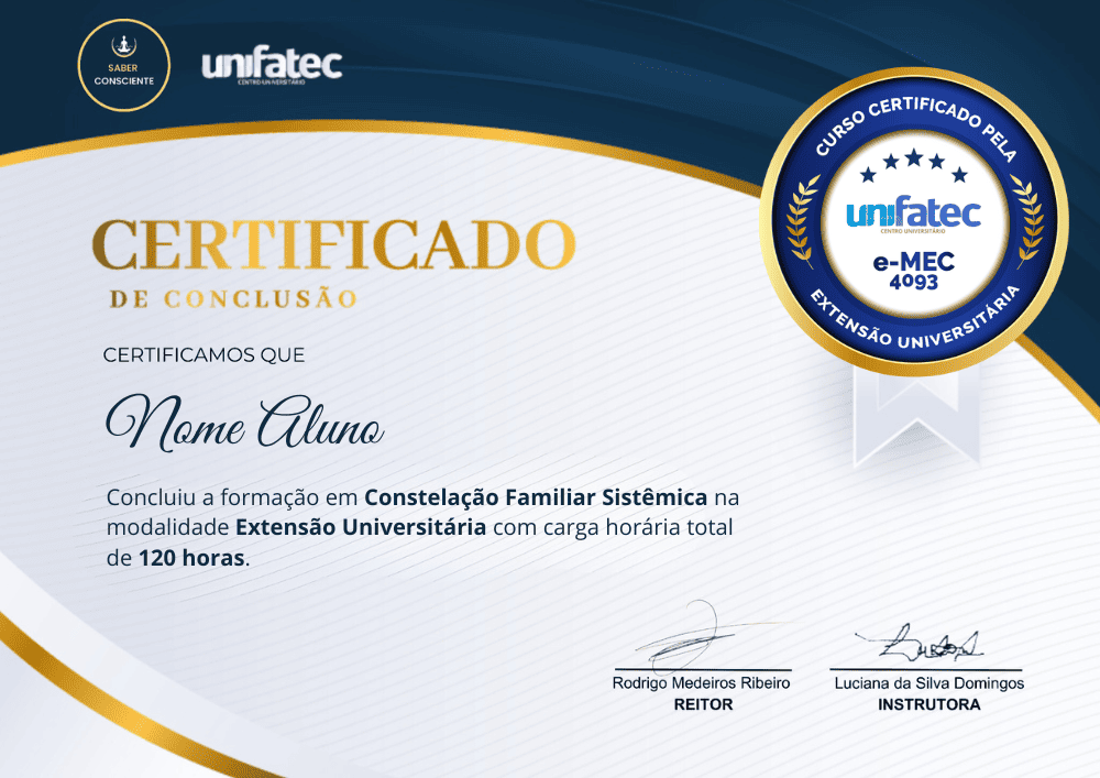 Garanta também seu certificado de Extensão Universitária de 120 horas reconhecido pelo MEC e emitido pela Faculdade UNIFATEC.