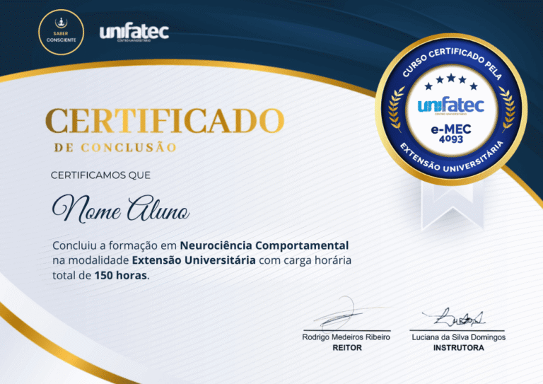 Garanta também seu certificado de Extensão Universitária de 150 horas reconhecido pelo MEC e emitido pela Faculdade UNIFATEC.